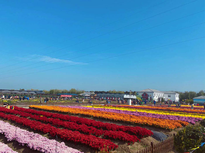 菊花展上,品种各异的菊花装点着每个展厅,提老携幼的游客沉浸在花的海洋,在形态各异的菊花前摆出造型,拍照打卡。